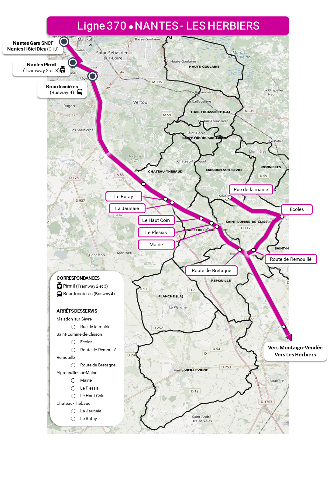 - MAISDON-SUR-SEVRE arrêt « Rue de la Mairie » (bus 370 NANTES)
