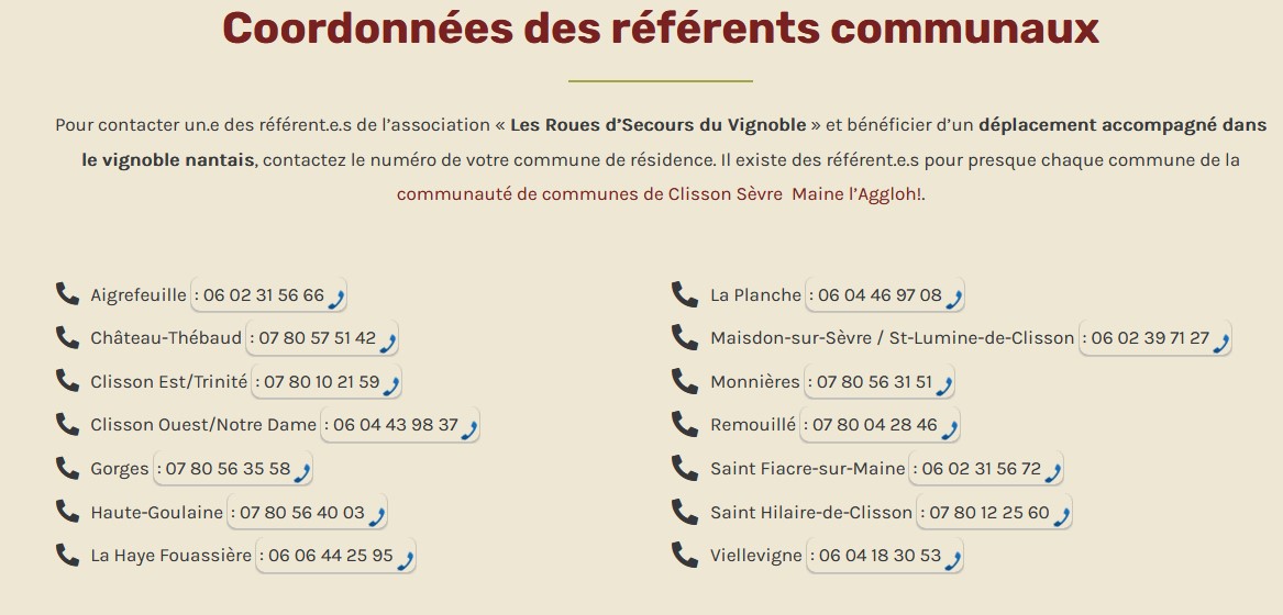 Sur la base du bénévolat et de la création du lien social, cette association propose de se déplacer pour les nécessités de la vie courante par le biais de chauffeurs bénévoles répartis dans l’ensemble du territoire de Clisson Sèvre et Maine Agglo.